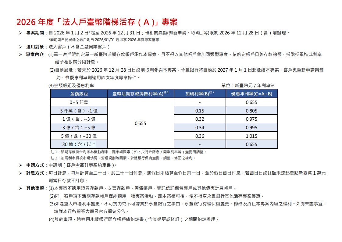 上一則 【公告】2026年度「金融同業臺幣優利活存」專案