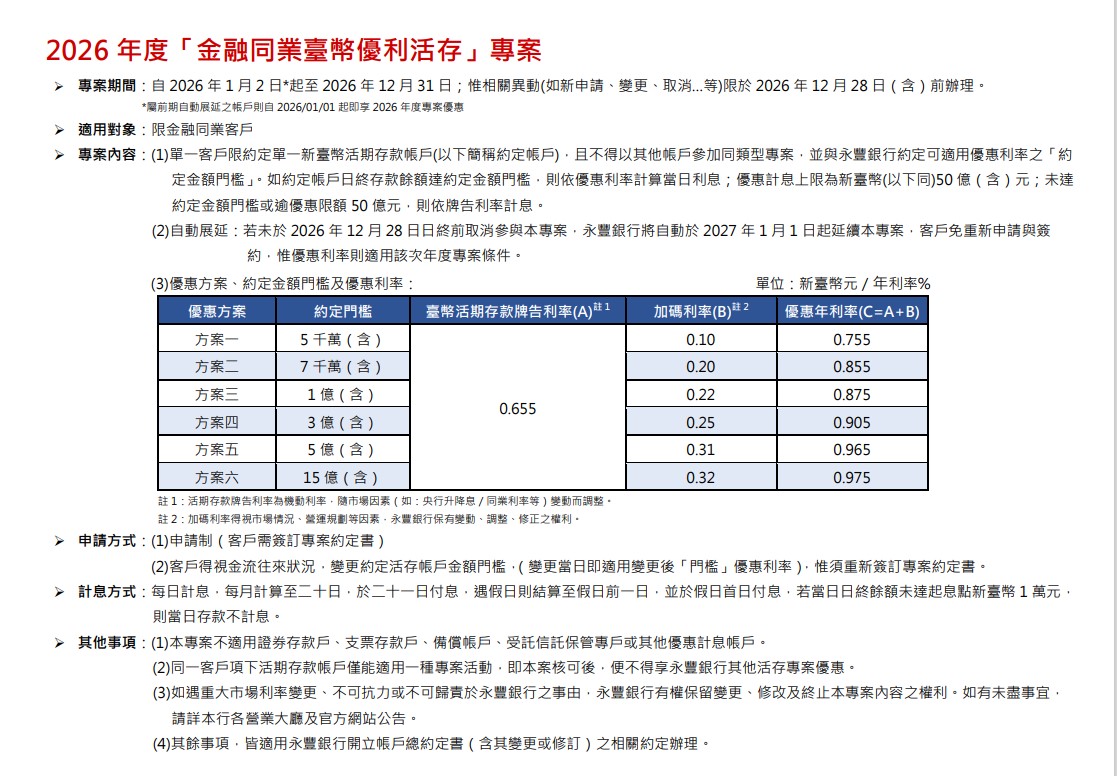 下一則 【公告】2026年度「法人戶臺幣階梯活存(A)」專案